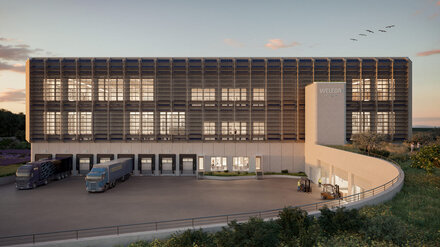 De nieuwe logistieke campus van Weleda ontving het DGNB pre-certificaat van de German Sustainable Building Council op het hoogste platina niveau en de eerste plaats in de categorie Ecological Reality van de polis Award 2024. foto: Michelgroup
